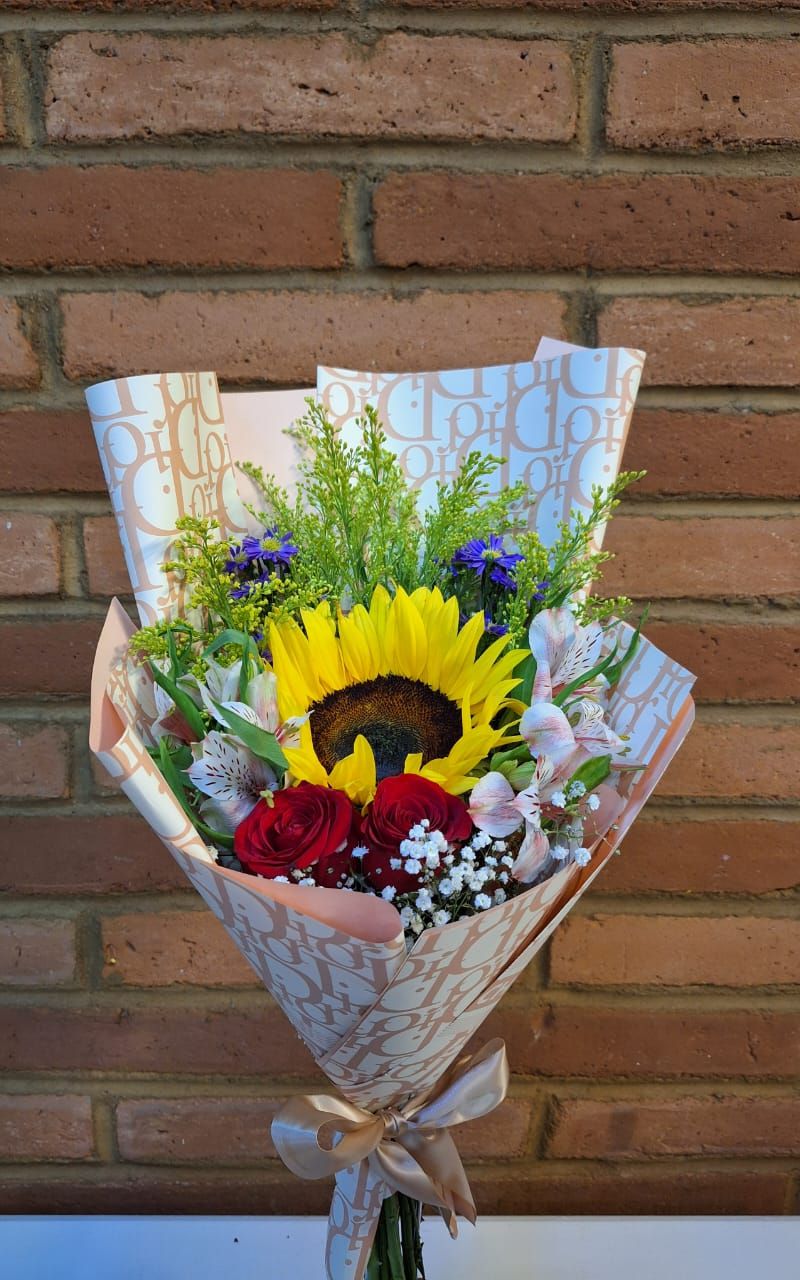GIRASOL CON 2 ROSAS