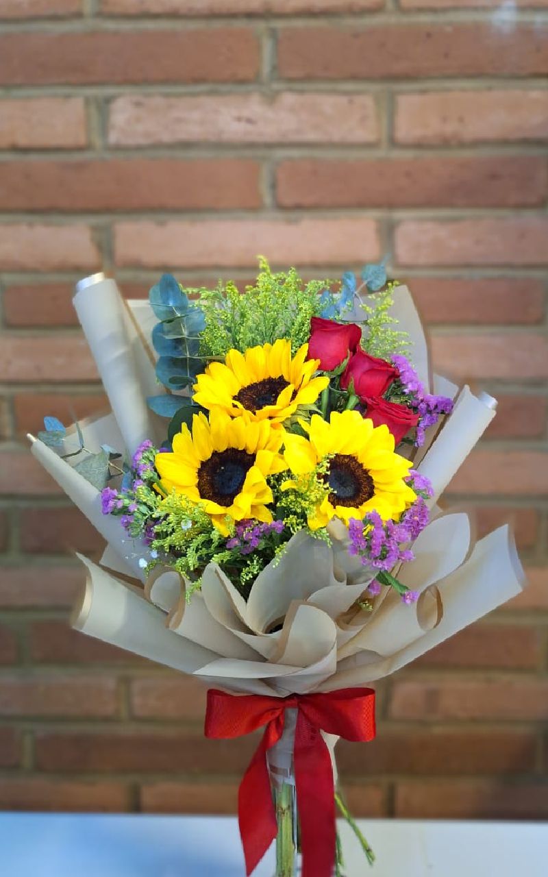 <p>RAMO CON 3 GIRASOLES 3 ROSAS </p>