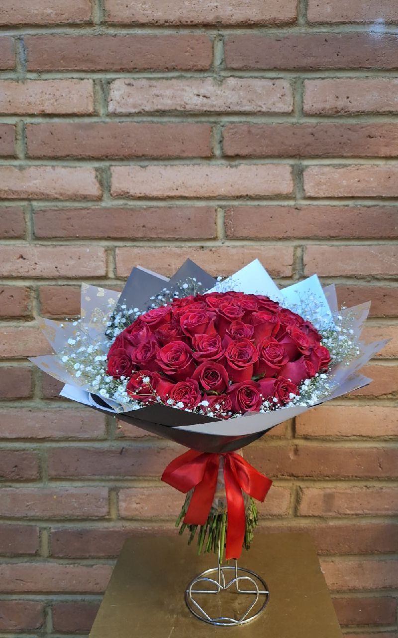 R2516 RAMO 50 ROSAS CON NUBECITA