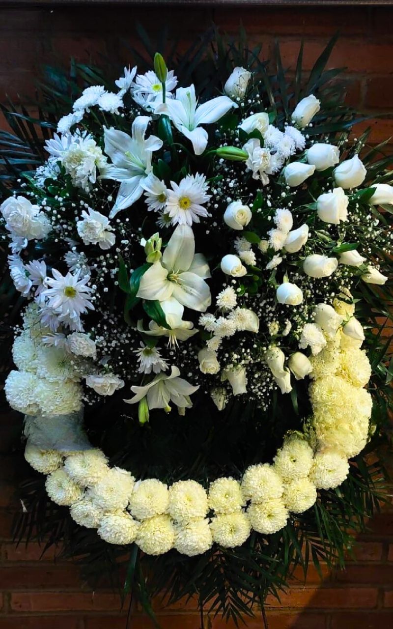 CORONA FUNEBRE CON ROSAS Y LILIS