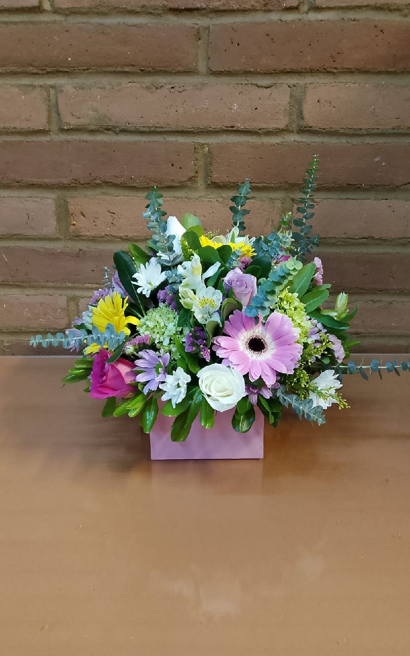 <p>CAJA CON 8 ROSAS, 5 GERBERAS, 4 HORTENCIAS, MARGARITAS, Y LINDOS FOLLAJES.</p><p>CAJA EN TONOS DISPONIBLES</p><p><br></p>