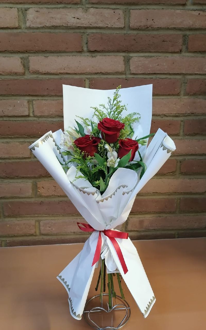 <p>RAMO DE TRES ROSAS ROJAS DECORADAS </p>