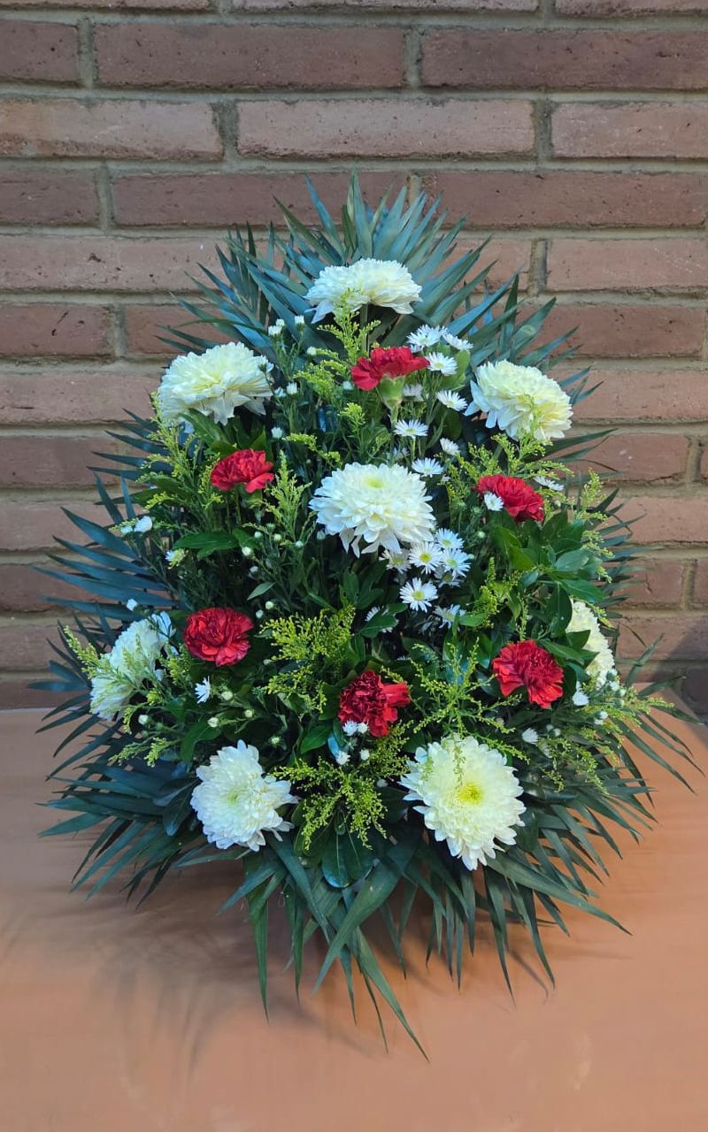 ARREGLO FUNEBRE 8 POLARES Y 6 CLAVELES ROJOS