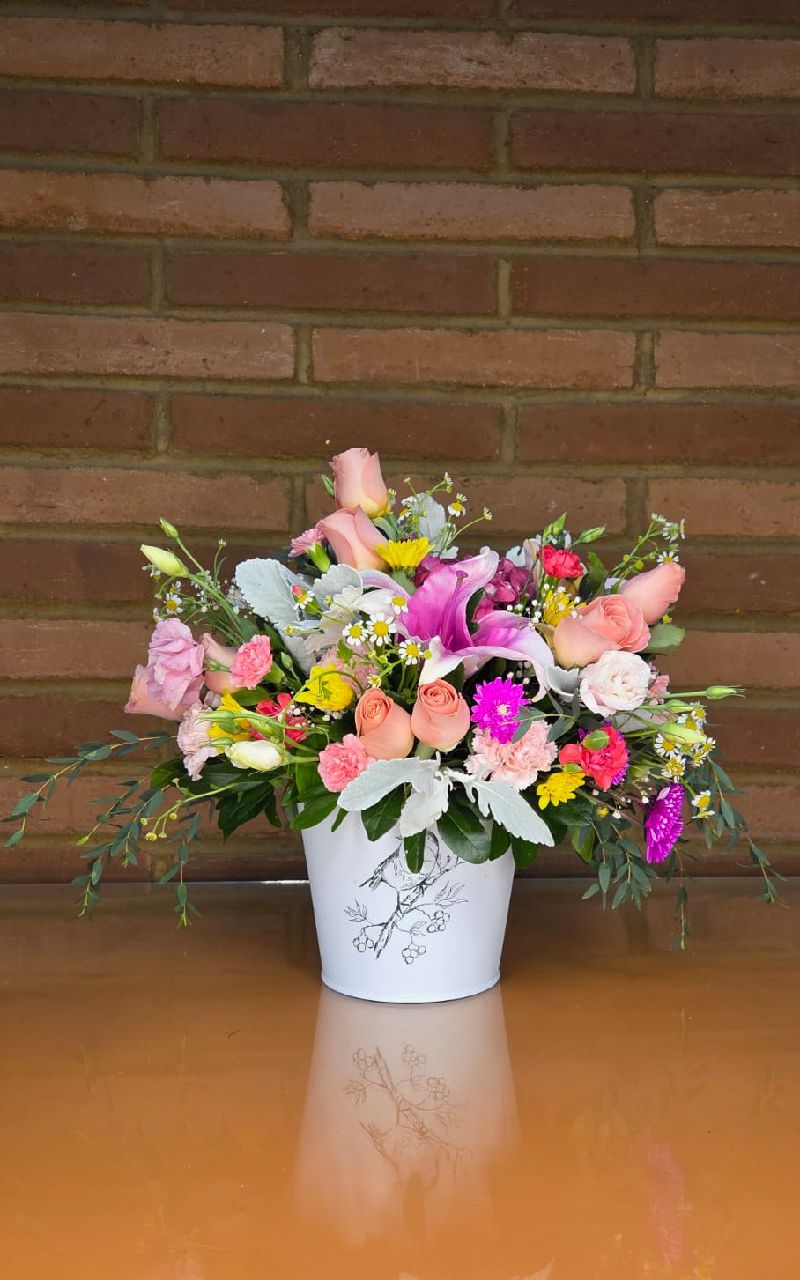 <p>ARREGLO 8 ROSAS, 1 CONCADOR, 8 CLAVELES EN BASE DE ALUMINIO</p>
