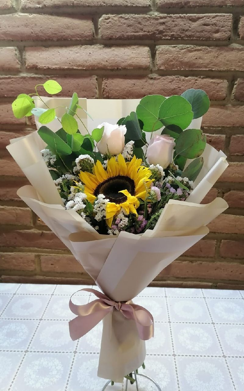 8352-3 GIRASOL CON 2 ROSAS BLANCAS