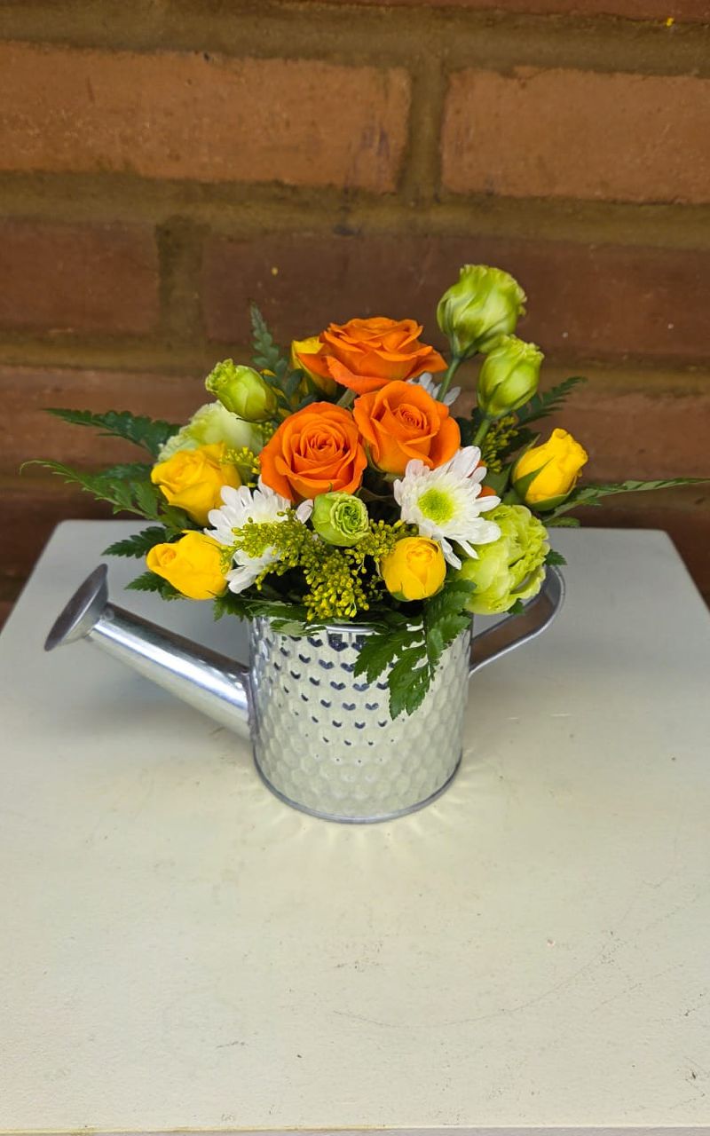 ARREGLO EN BASE REGADERA LISIANTHUS Y MINIROSA