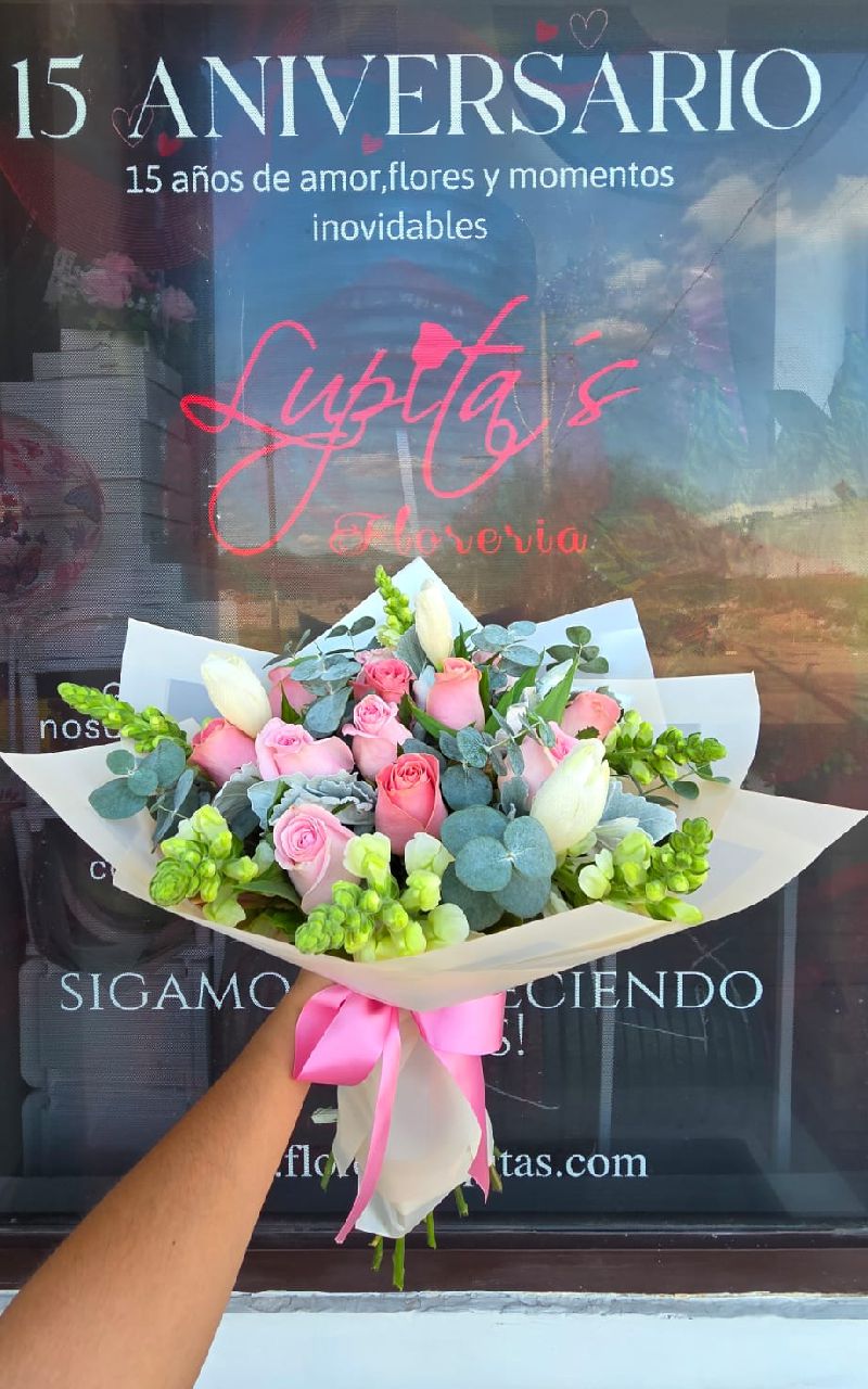 RAMO SURTIDO DE 10 ROSAS Y 3 TULIPANES