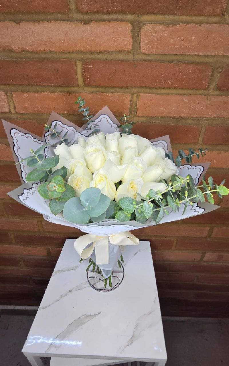 RAMO DE 24 ROSAS BLANCAS CON MINI DOLLAR