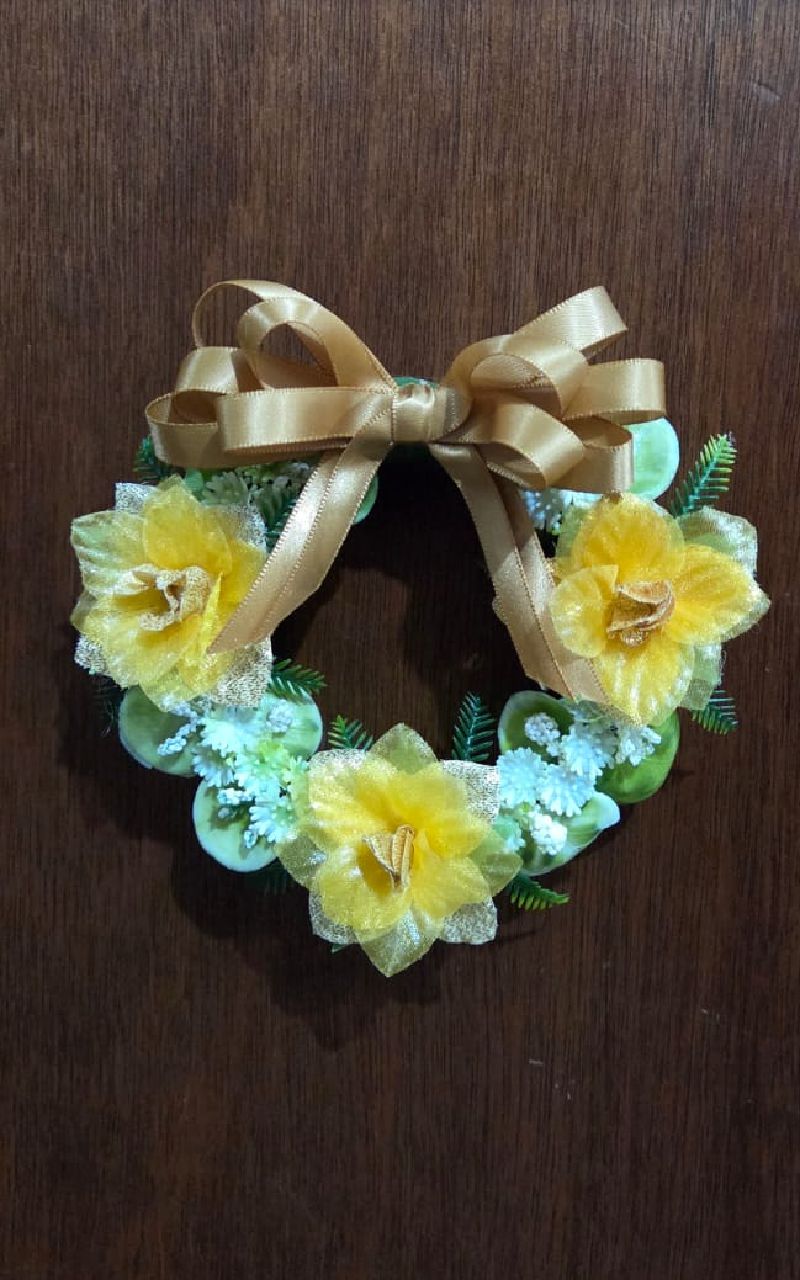 CORONA PARA NICHO FLORES AMARILLAS MOÑO DORADO