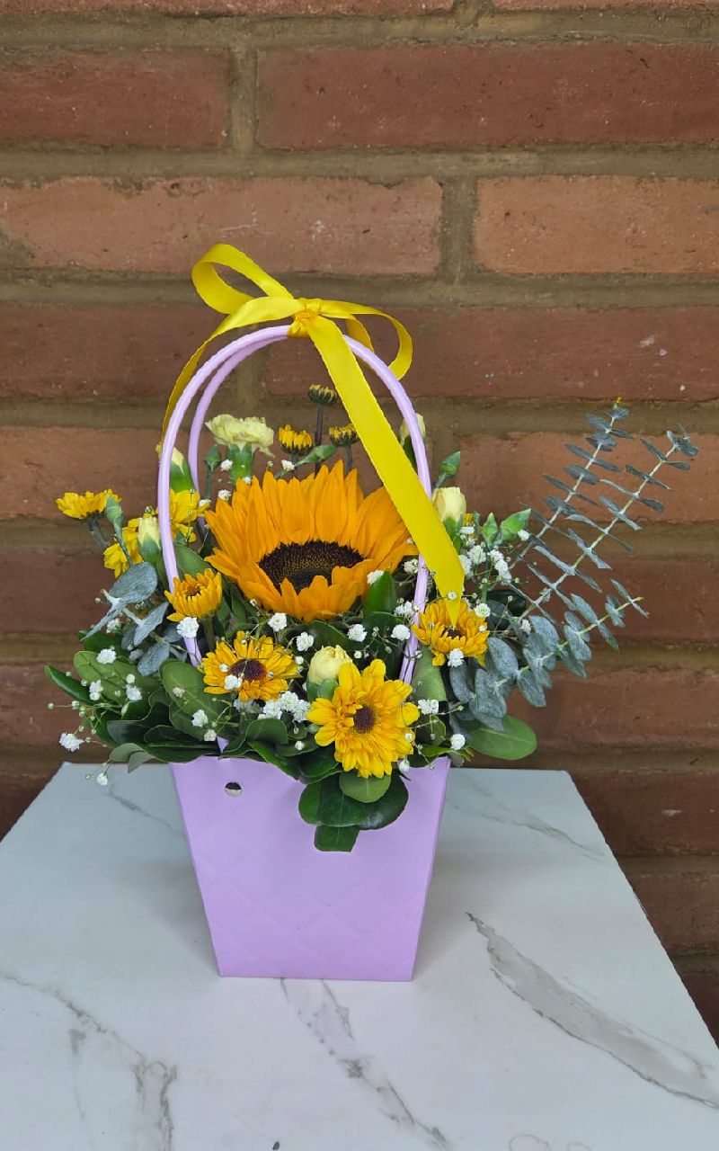 BOSITA CON GIRASOL MARGARITAS CLAVELLINA